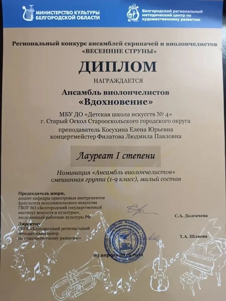 В «Детской школе искусств №1» г. Губкина прошёл 2 тур Регионального конкурса ансамблей скрипачей и виолончелистов «Весенние струны».
