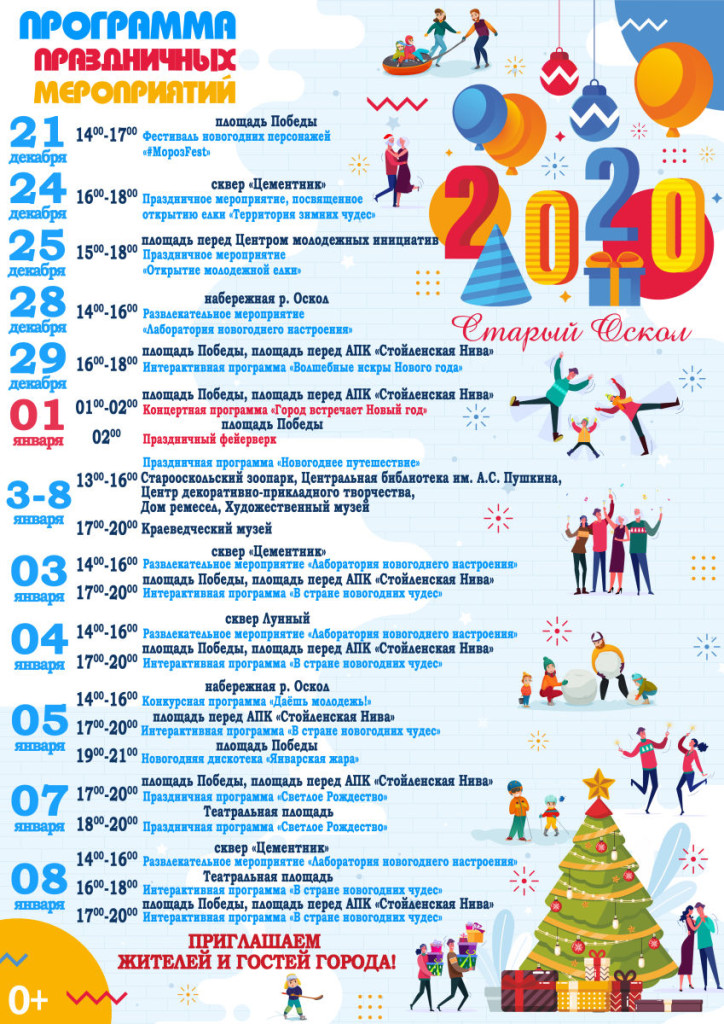 Весело и все вместе встречаем 2020 год! ⠀ Огромное количество интерактивных площадок, концертов и многое другое ждет жителей города в период с 21.12 по 8.01. ⠀ Внимательно изучаем программу праздничных мероприятий на предновогодние, праздничные дни и готовимся к активному отдыху!✨❄