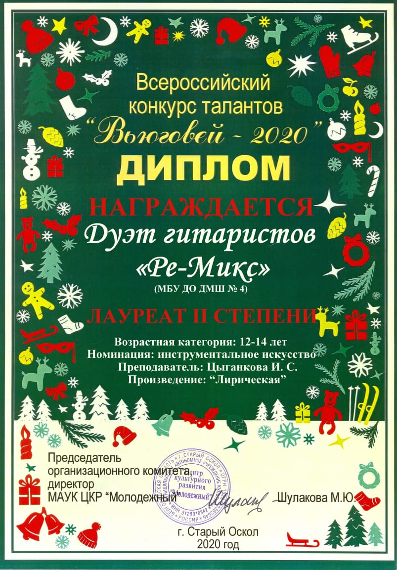Дуэт гитаристов «Ре-Микс» в составе: Кудрявцева Елена, Винников Александр (преп. Цыганкова И.С.)