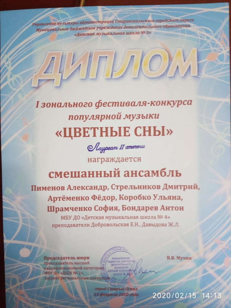 15 февраля на базе МБУ ДО «ДМШ №3» состоялся I зональный фестиваль-конкурс популярной музыки «Цветные сны».