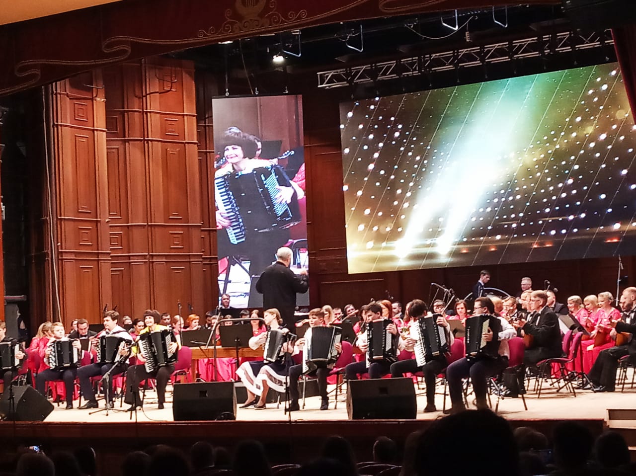 В грандиозном концерте «На сцене с маэстро» с участием звёзд мирового классического искусства лауреата Международных и Всероссийских конкурсов Майи Балашовой (вокал), доцента РАМ им. Гнесиных, кандидата искусствоведения Марии Власовой (аккордеон), доцента РАМ им. Гнесиных, солистки и концертмейстера Национального академического оркестра народных инструментов России им. Осипова, кандидата искусствоведения Екатерины Мочаловой (домра) выступили обучающиеся нашей школы: солисты Антипова Карина, Карпенко Дарья (рук. Кристиненко Любовь Владимировна) и совместный фольклорный ансамбль обучающихся «ДМШ №4» и «ДМШ №5» (рук. Кристиненко Любовь Владимировна) в сопровождении Академического русского оркестра народных инструментов (рук. Евгений Алешников).