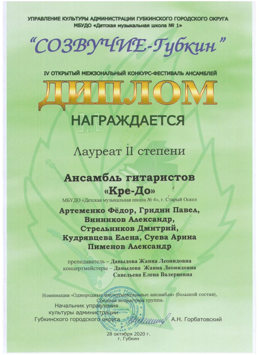 Ансамбль гитаристов «Кре-До» Артеменко Фёдор, Винников Александр, Гридин Павел, Кудрявцева Елена, Пименов Александр, Стрельников Дмитрий, Суева Арина, преп. Давыдова Жанна Леонидовна