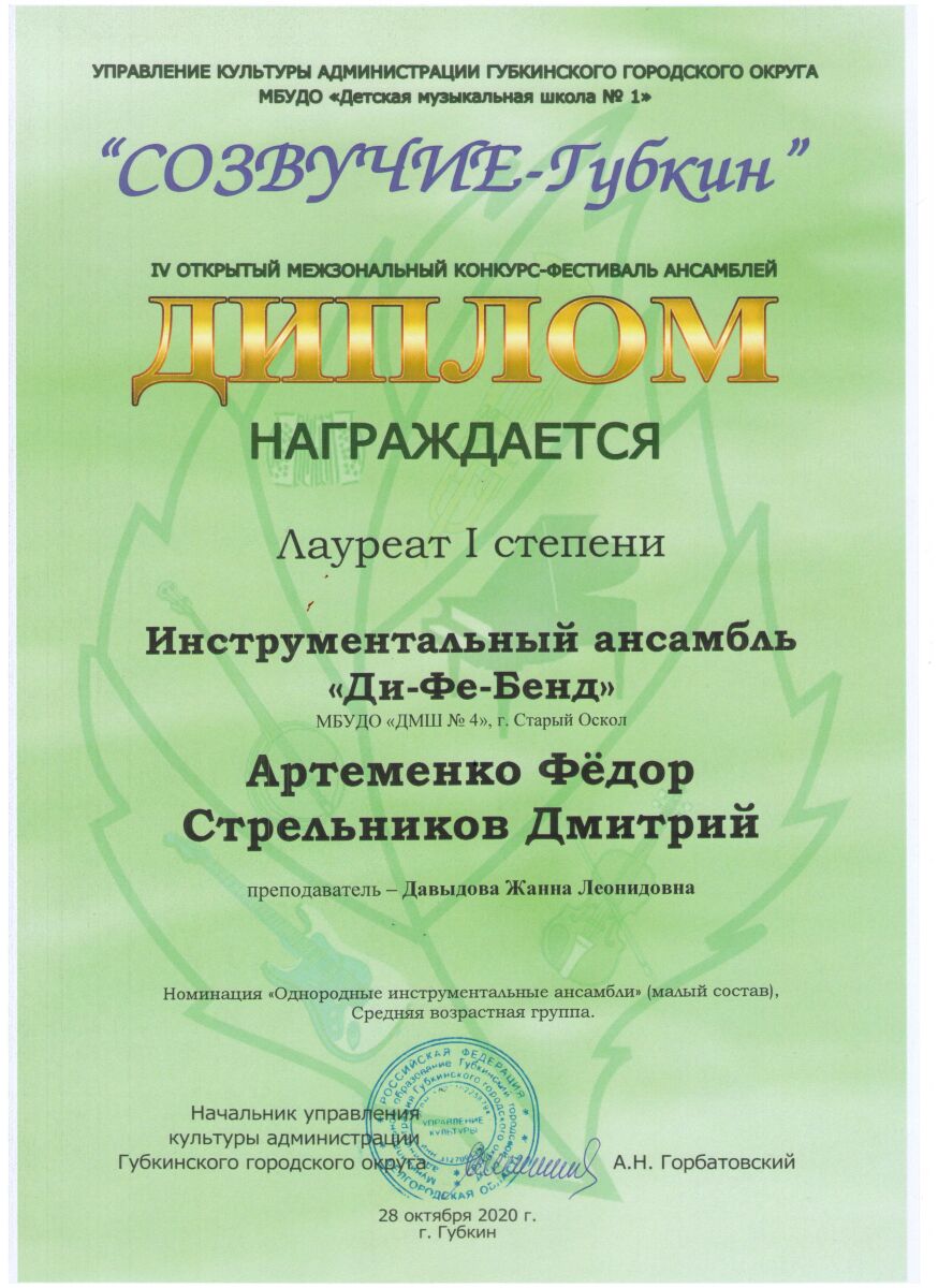 Инструментальный ансамбль Ди-ФеБенд» Артёменко Фёдор, Стрельников Дмитрий, преп. Давыдова Жанна Леонидовна
