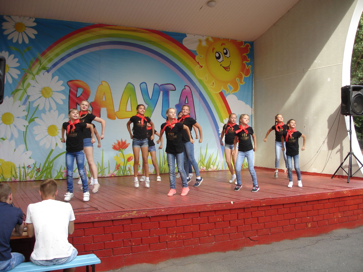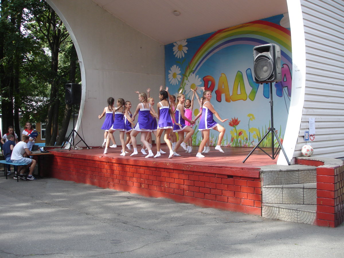 Участницам отделения хореографии даже на отдыхе некогда расслабляться. С 5 июля у них началась насыщенная жизнь, ведь они приехали в лагерь «Радуга». Это место стало для девочек уже вторым домом, а фраза тренера, Хорольской Светланы Сергеевны, : « Мы приехали сюда работать, а не отдыхать», — девизом июля. И в правду, день «Эксклюзивчиков» отличается от распорядка лагерного дня. Утро танцоров обычно начинается с зарядки, завтрака, впрочем, как у всех остальных ребят. Но потом у жителей 13 региона начинается самая важная и неотъемлемая часть дня- тренировка, на которую ребята идут с большим удовольствием. После занятий девчонкам просто необходим обед и сон, чтобы набраться сил. Ну, а после, «Эксклюзив» готовится к вечерним мероприятиям, придумывает различные сценки, флешмобы и многое другое. Ни одно мероприятие не обходится без танцоров, потому что девочки даже здесь стараются дарить свое творчество жителям Радужной федерации. Как говорится: «Поработали на славу, теперь можно и отдохнуть!», поэтому день в лагере заканчивается