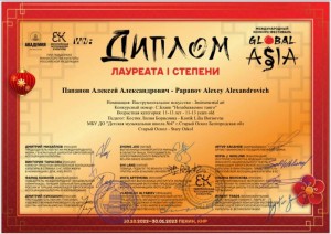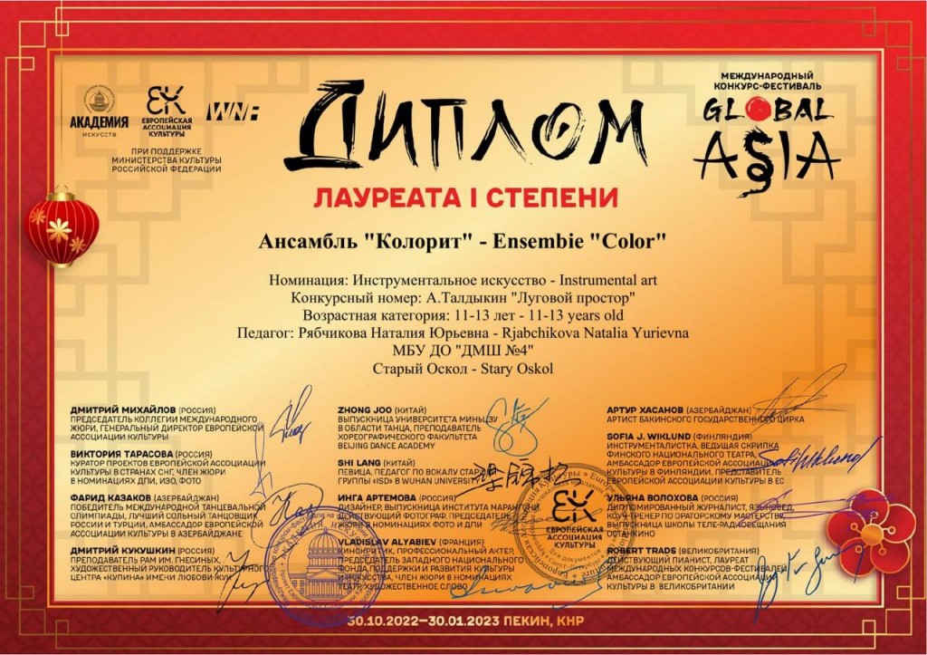 Стали известны результаты Международного конкурса-фестиваля Global Asia (г.Пекин, Китай), проходившего в ноябре 2022г. при поддержке министерства культуры РФ.
