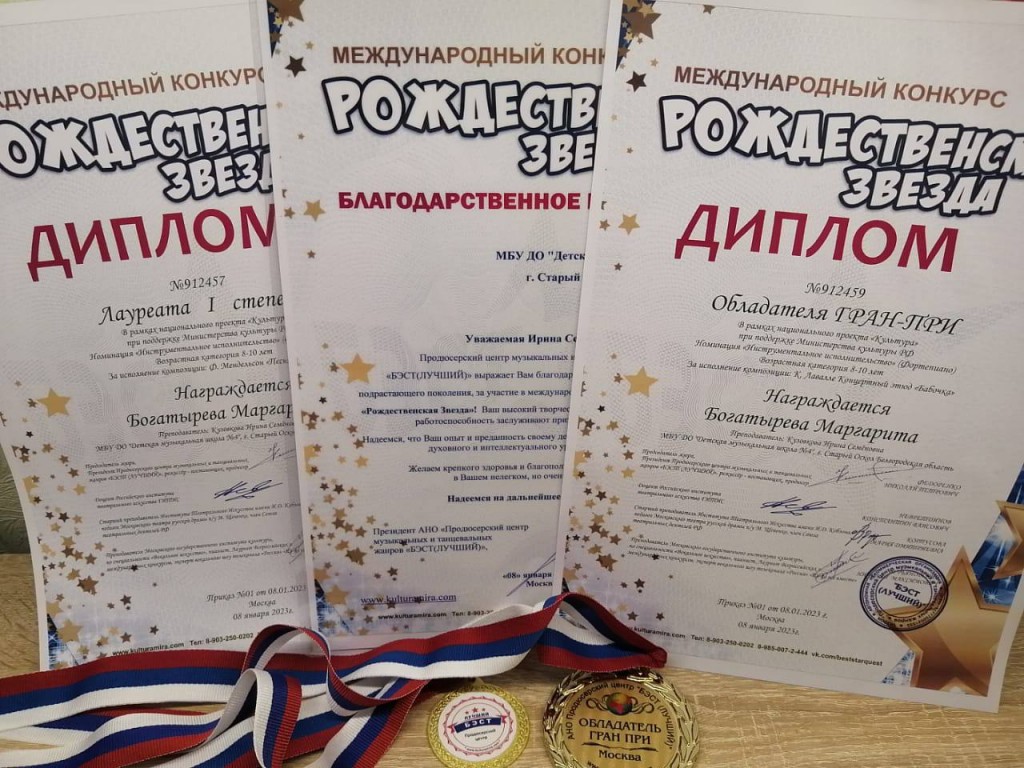 Учащаяся фортепианного отделения Богатырева Маргарита (преп. Кузовкова И.С.) стала обладателем Гран При и Лауреатом I степени.