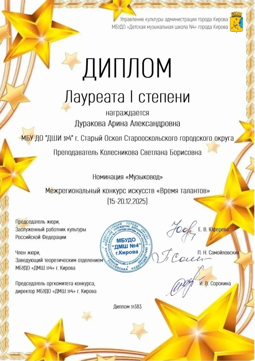 Дуракова Арина (преп. Колесникова С. Б., Лазебная С. В.).
