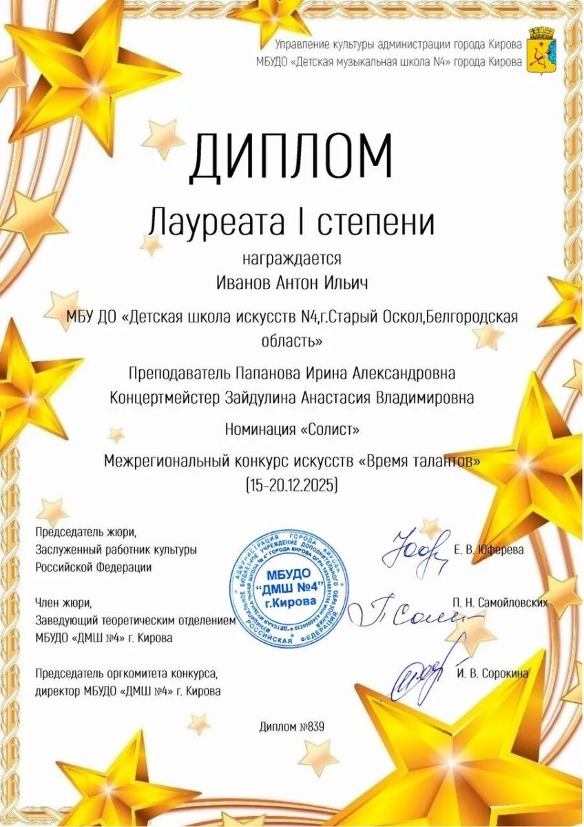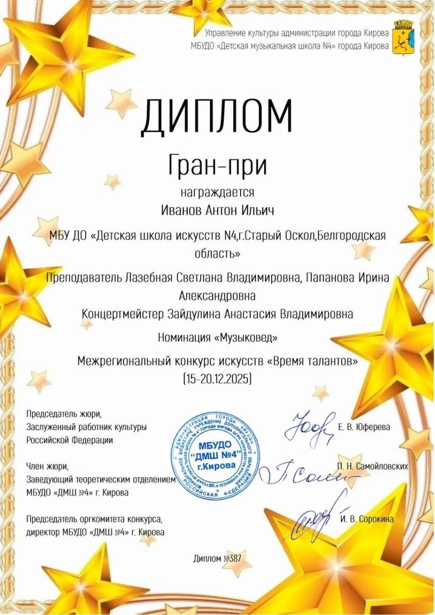 Иванов Антон (преп. Папанова И. А., Лазебная С. В., конц. Зайдулина А. В.).