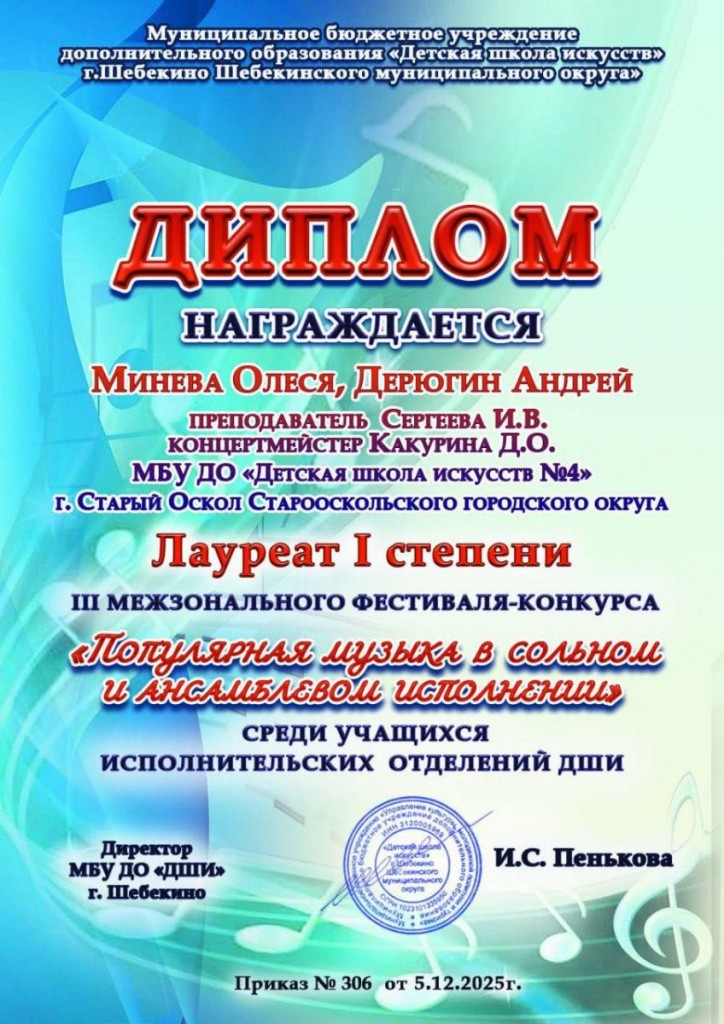 Дуэт Минева Олеся, Дерюгин Андрей (преп. Сергеева И. В., конц. Какурина Д. О.);