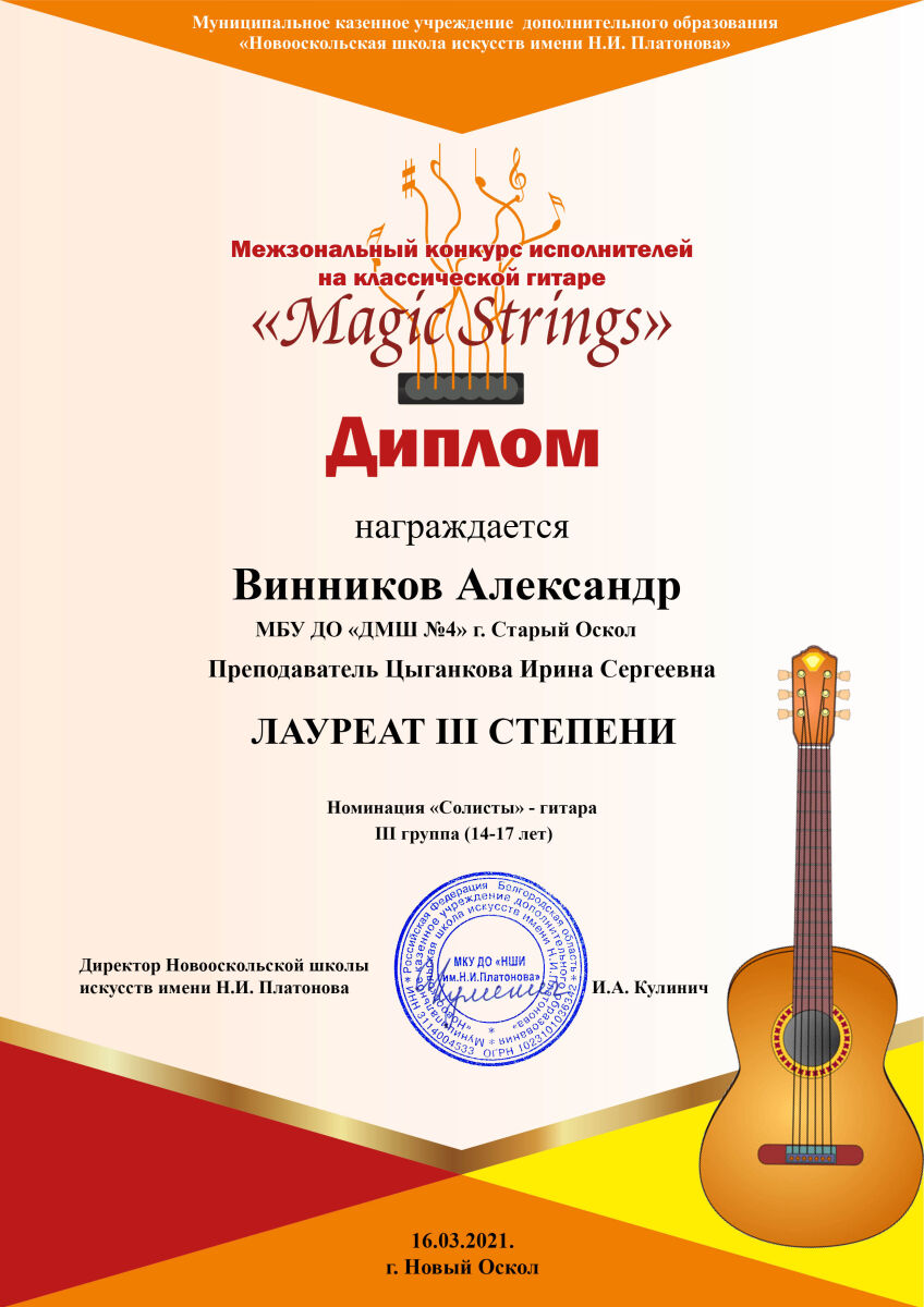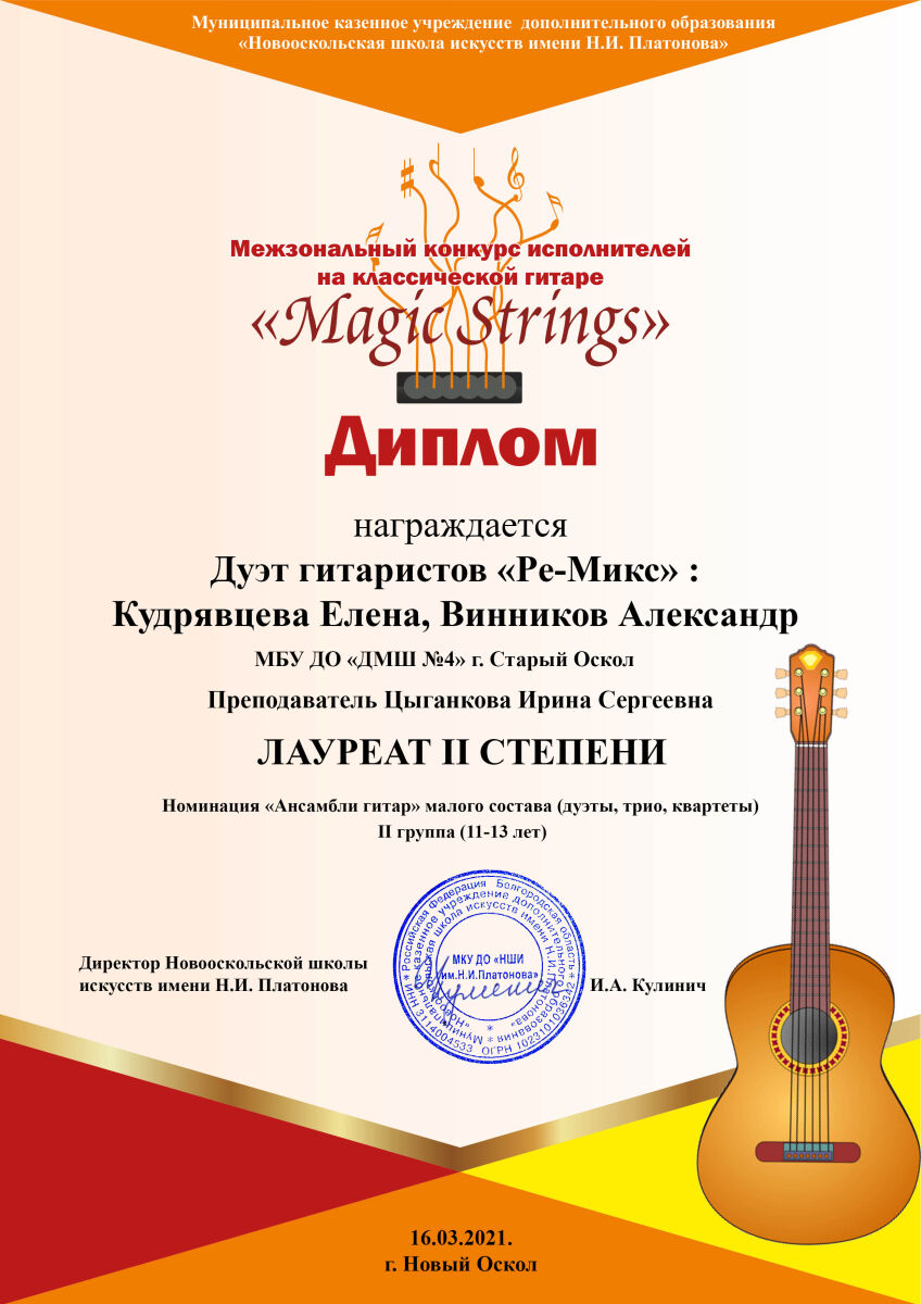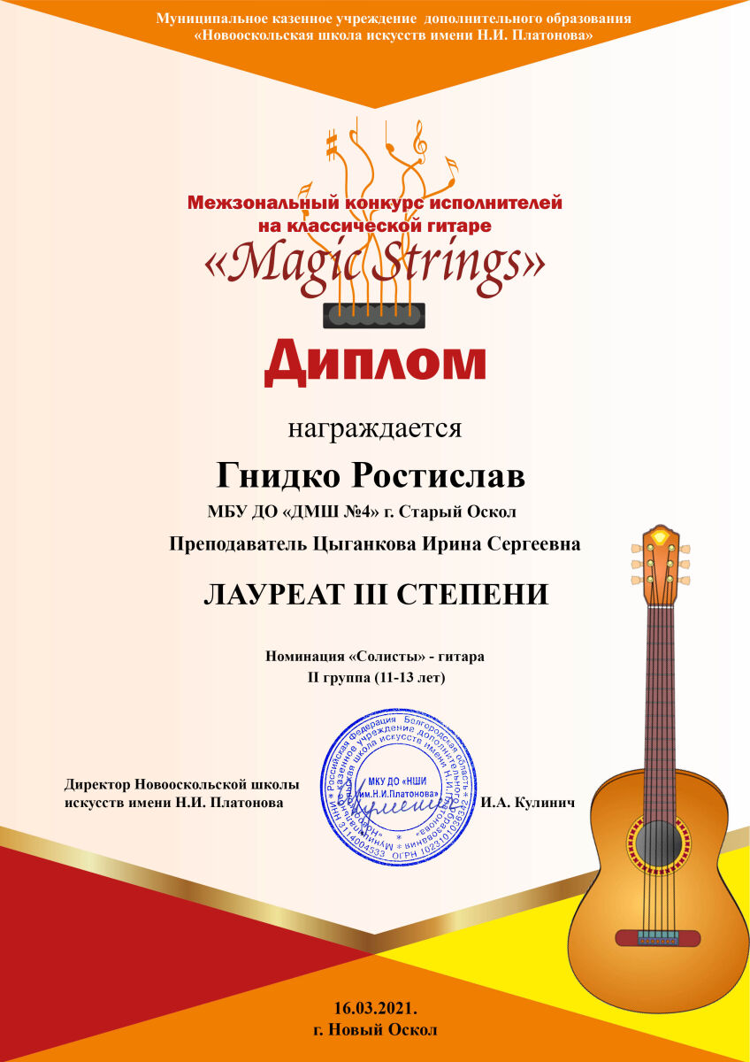 16 марта состоялся Межзональный конкурс исполнителей на классической гитаре «Magic strings» (г. Новый Оскол)