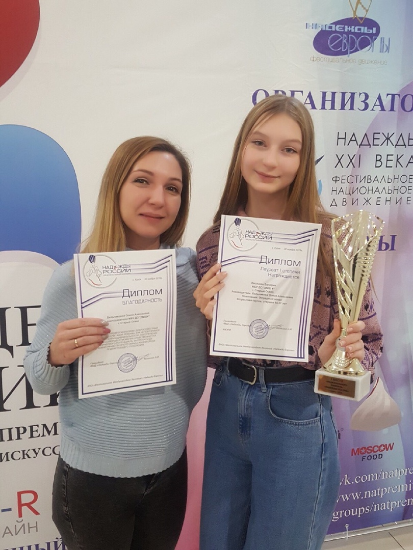 Поздравляем победительницу национального конкурса «Надежды России» (30 ноября 2019г., г. Курск) Песоцкую Валерию — лауреат 1 степени (кл. преп. Бельчиковой О.А.).