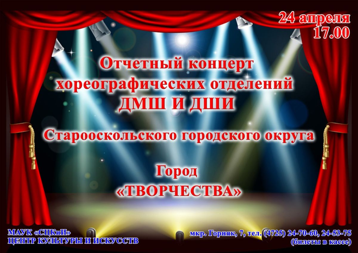 24 апреля 2017 года в Старооскольском центре культуры и искусств состоялся отчетный концерт хореографических отделений ДМШ и ДШИ Старооскольского городского округа.