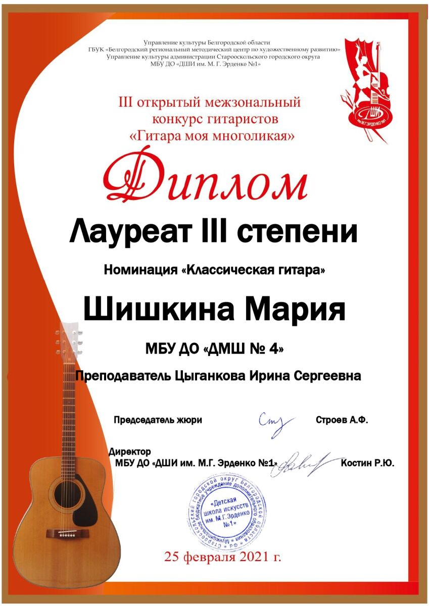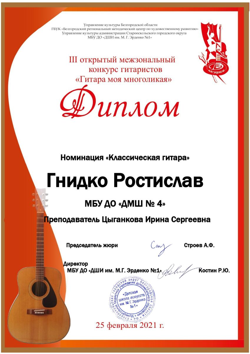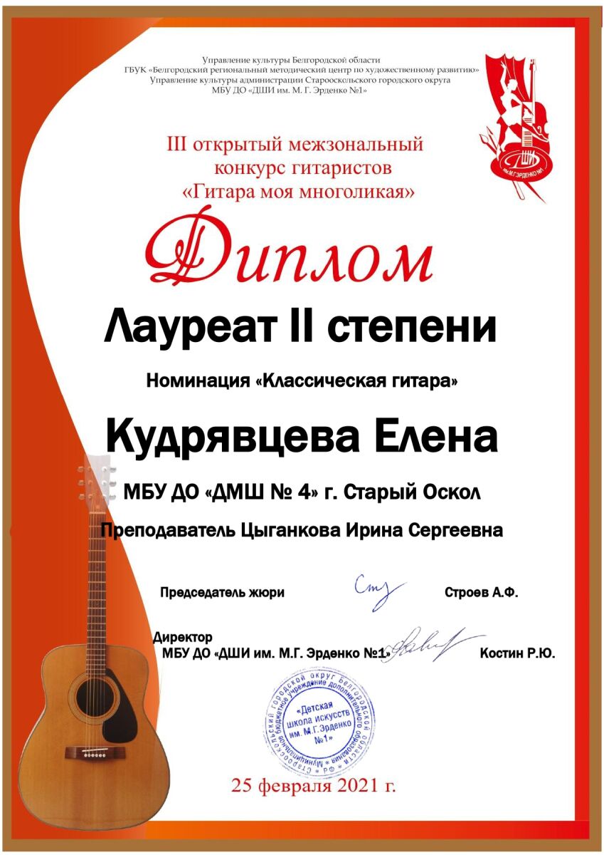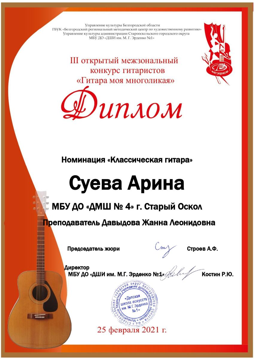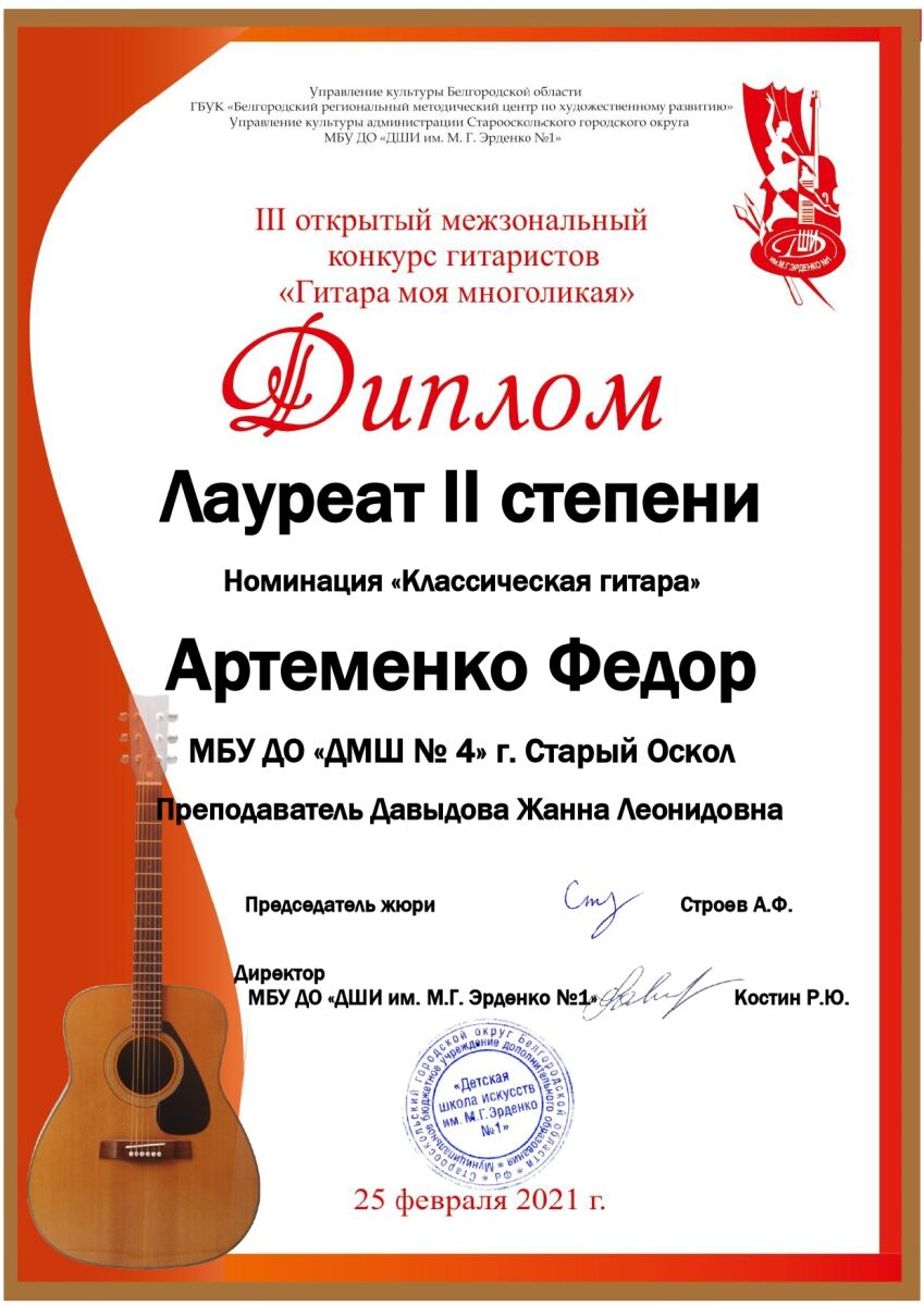 25 февраля прошел Открытый межзональный конкурс гитаристов «Гитара моя многоликая» (г. Старый Оскол).