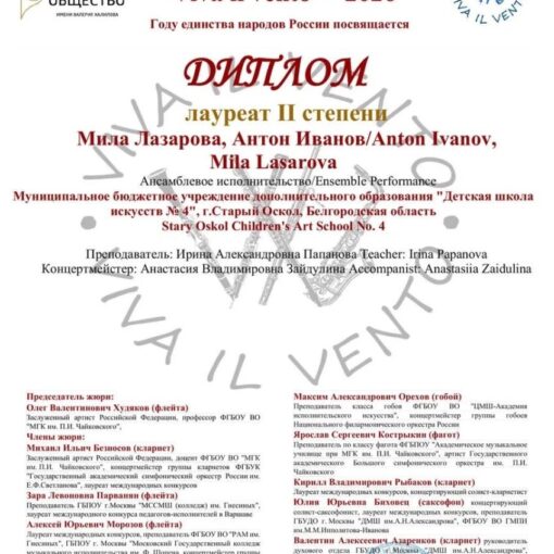 Дуэт: Такшин Захар и Черепова Нина — дипломанты