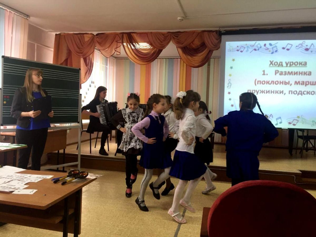 Преподаватель Шаповалова Елена Викторовна показала открытый урок по ритмике с учащимися 1 класса на тему «Формирование и воспитание чувства метроритма у детей 8-летнего возраста в ДМШ. Формы работы.» Концертмейстер Савельева Елена Валерьевна.