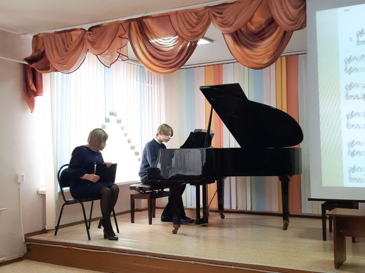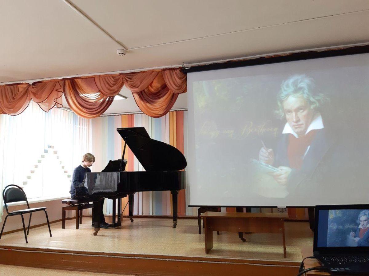 Преподаватель Ходакова Наталья Анатольевна подготовила и показала открытый урок с методическим сообщением на тему: «Работа над образно-смысловой драматургией в сонате №5 c-moll ч.1. Л.Бетховена» с учащимся 7 класса Логвиновым Михаилом.