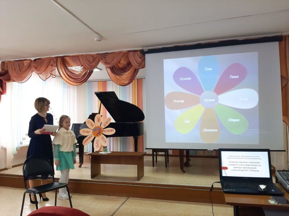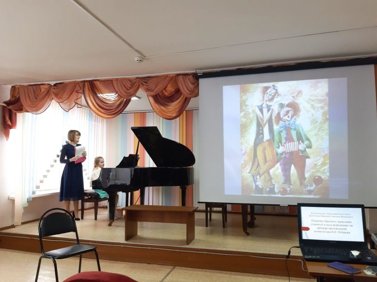 Преподаватель Иванова Светлана Валерьевна провела открытый урок с методическим сообщением на тему: «Развитие образного мышления учащихся класса фортепиано на примере произведений А.Ребикова» с учащейся 5 класса Гнедой Марией.