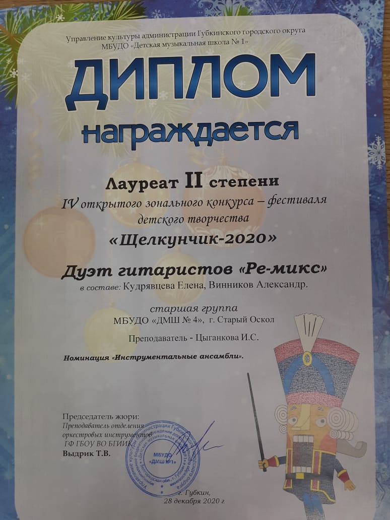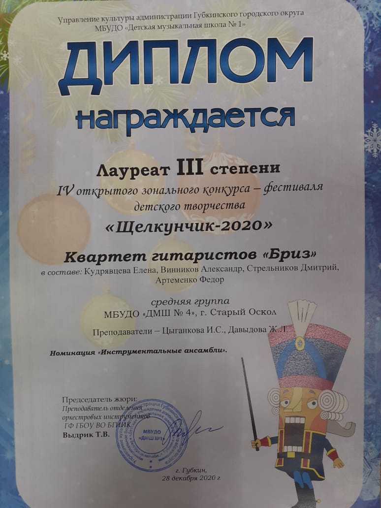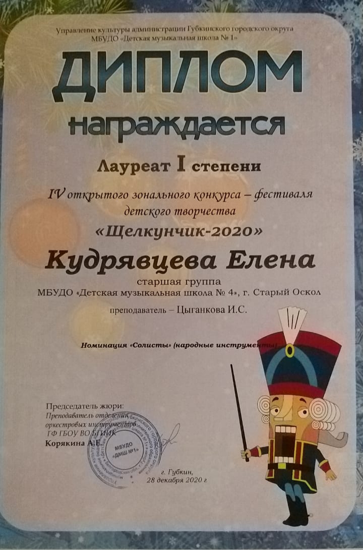 28 декабря в МБУ ДО «ДШИ1» г. Губкина состоялся IV открытый зональный конкурс-фестиваль детского творчества «Щелкунчик — 2020».