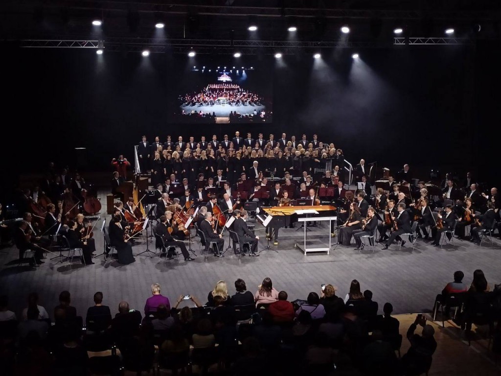 На концерте прозвучало масштабное сочинение автора — симфоническая поэма «Прометей» в исполнении Государственного академического Большого симфонического оркестра им. П.И.Чайковского под управлением Народного артиста СССР Владимира Федосеева, камерного хора им. С.В.Рахманинова (г. Тамбов) и сводного хора преподавателей Старооскольского городского округа,в который входят преподаватели нашего учреждения.