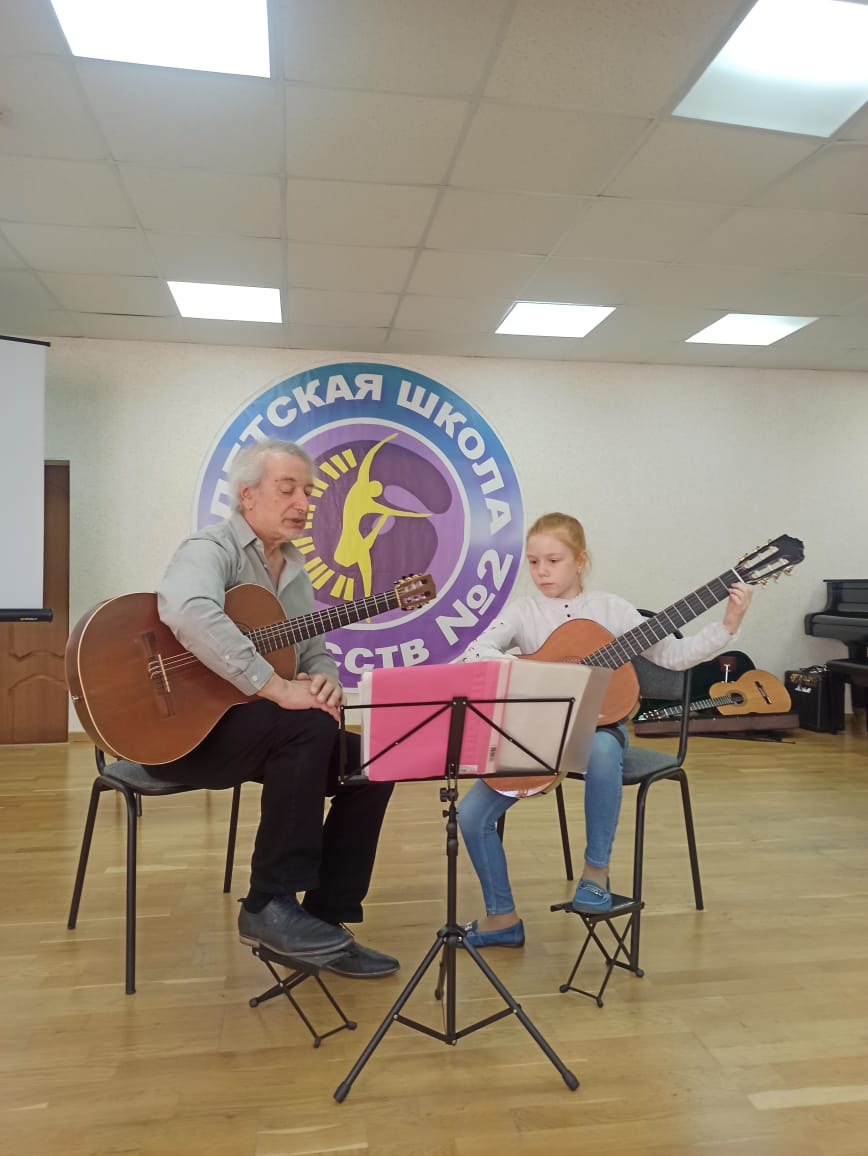 14 и 15 апреля в Детской школе искусств №2 состоялась творческая встреча с преподавателем, композитором, аранжировщиком, арт-директором авторской гитарной школы «Мастерство и вдохновение» — Александром Иосифовичем Виницким.