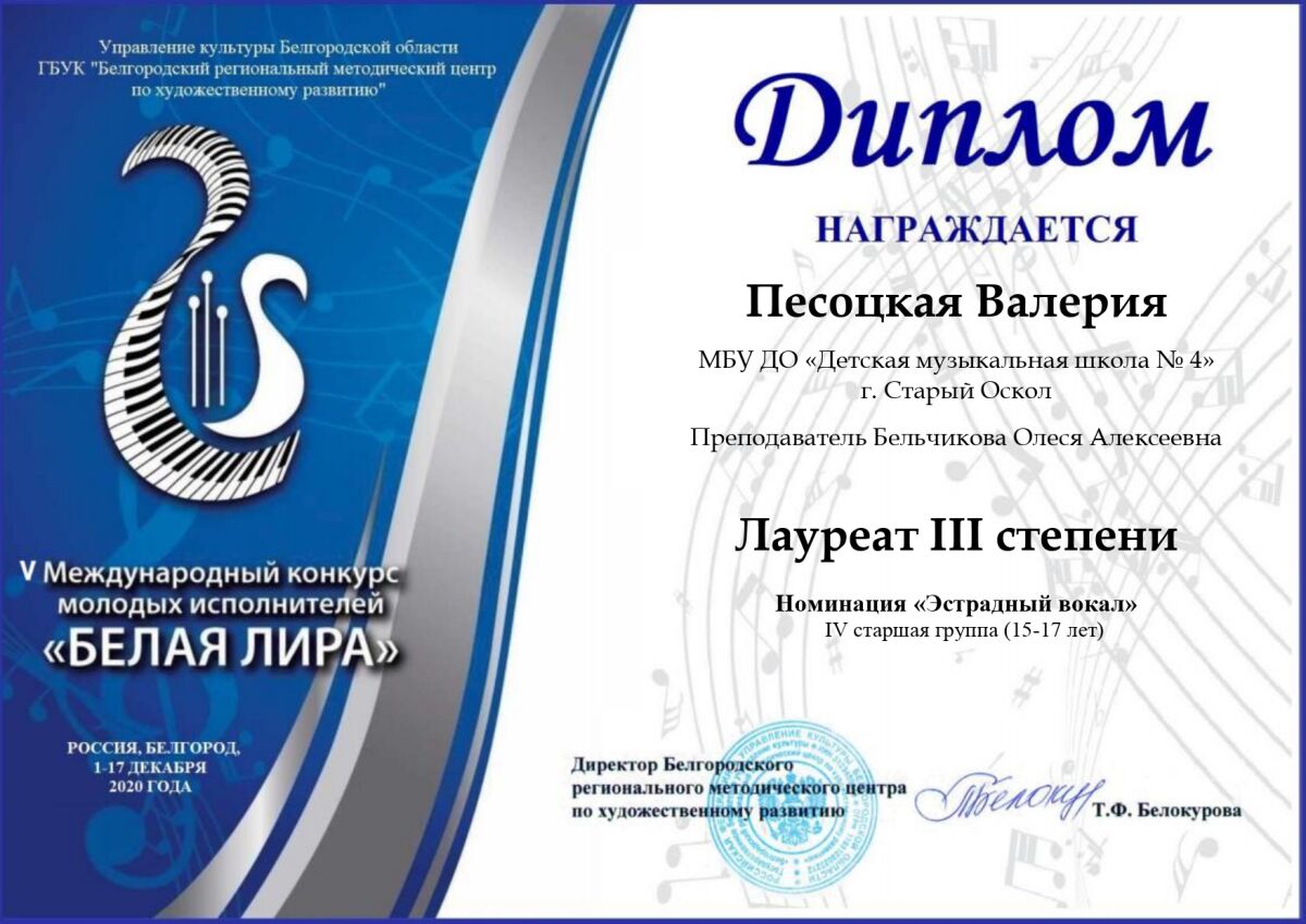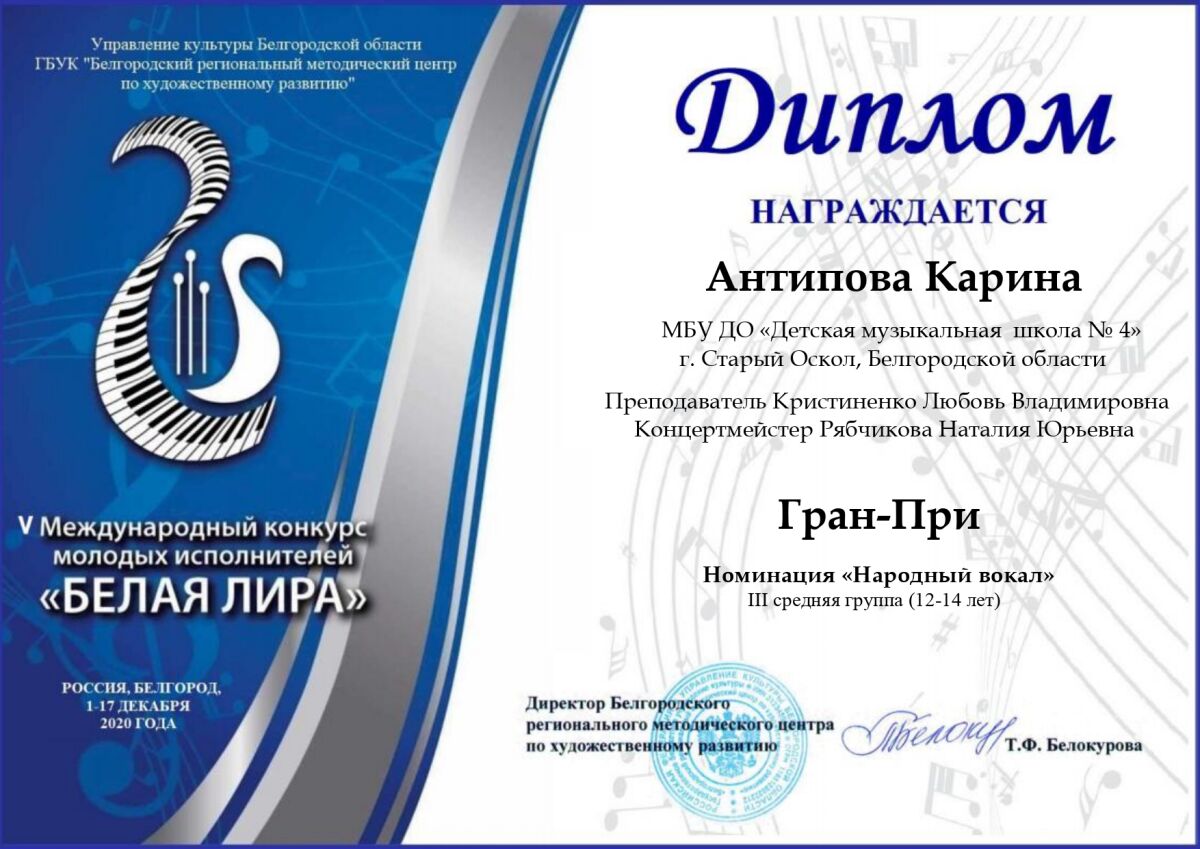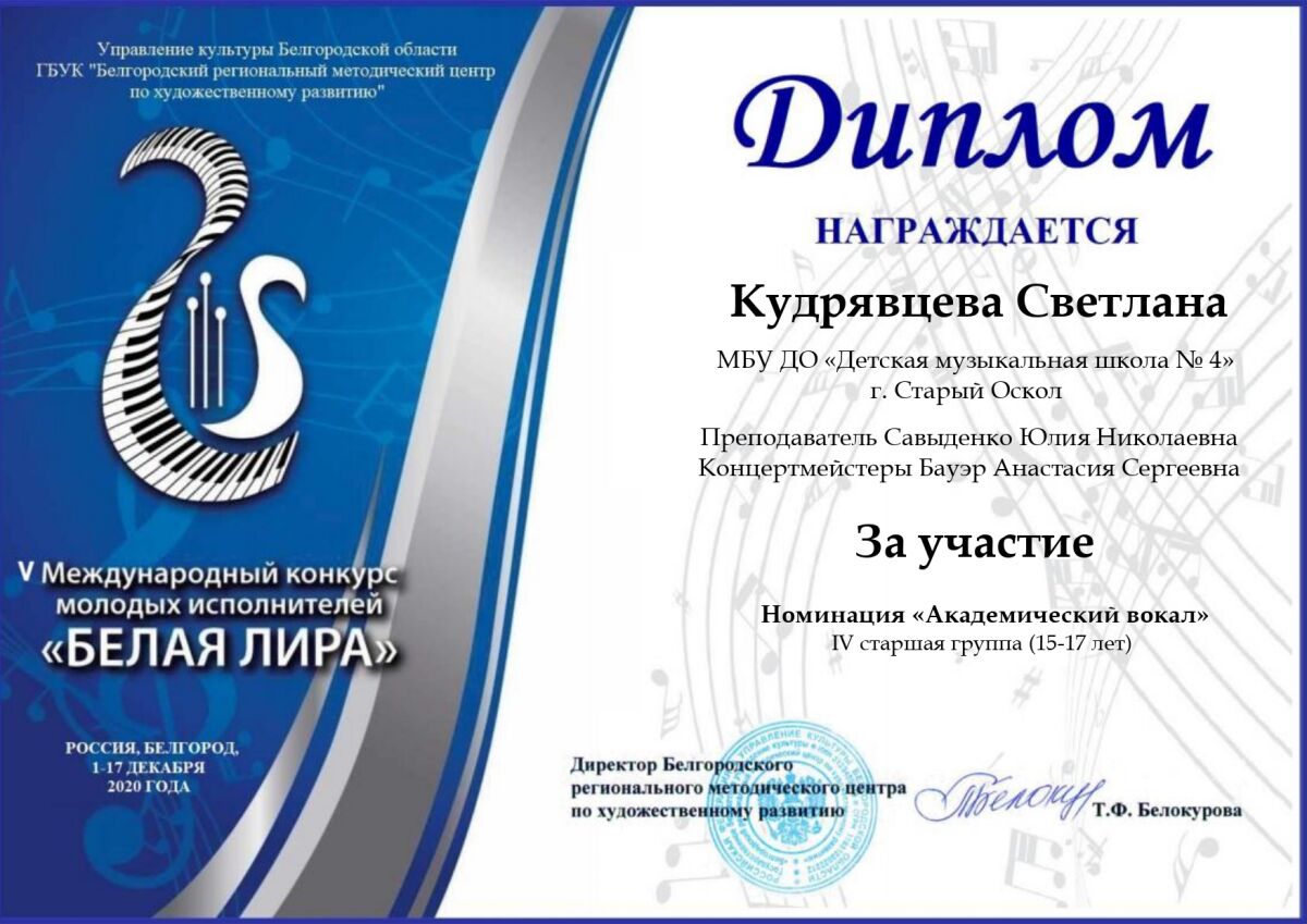 Поздравляем победителей V Международного конкурса молодых исполнителей «Белая Лира».