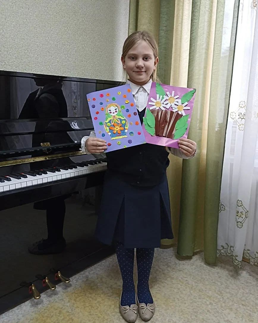 Учащиеся учреждения поздравили своих преподавателей и мам прекрасными рисунками, из которых была организована выставка.